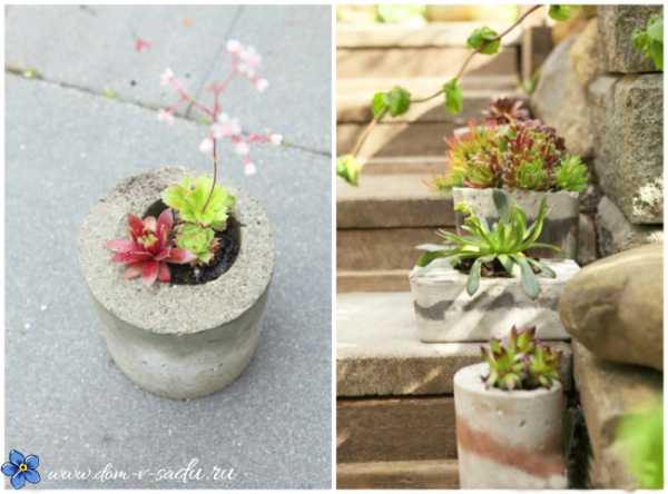 Если цементную смесь залить в цилиндрические формы, то можно сделать вазоны для садовых цветов и благоустроить весь участок. Он будет просто утопать в цветах!