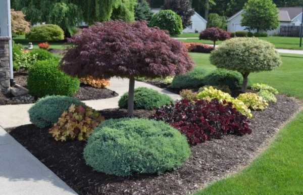 Для более основательного и долговечного оформления участка следует сажать декоративные кустарники и деревья, которые выгодно скроют неказистые хозяйственные постройки и разделят землю на различные зоны, снабжая их прохладной тенью.
