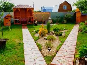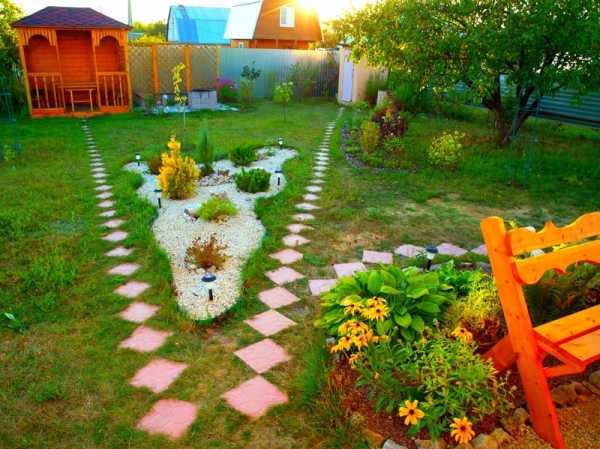 Не ограничивайтесь только посадками декоративноцветущих растений. Несомненно, цветы, цветущие все лето нужно обязательно сажать на садовом участке. Однако присмотритесь к тому, что можно сделать на приусадебном участке — оригинальное уличное садовое освещение, интересный дизайн дачных дорожек, небольшой кирпичный мангал и уютная мебель…