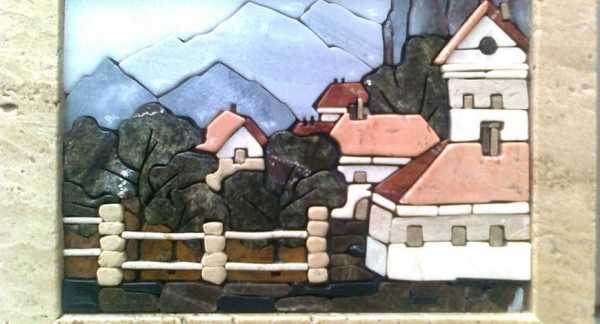 Далее, эти осколки наклеиваются на деревянную основу, и создается необходимый рисунок.