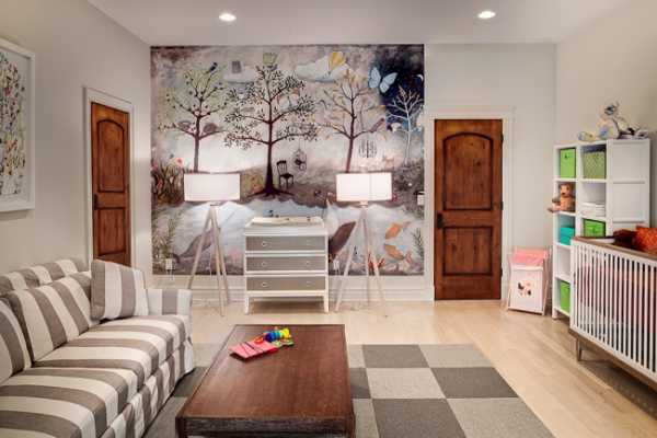 При составлении декоративного панно в детской комнате в качестве основы удобно использовать фотообои. Обсудите со своим ребенком, что бы он хотел видеть у себя на стене, создайте проект, соответствующий общему стилевому решению комнаты.