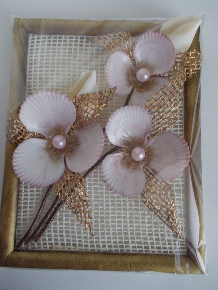 Окрасьте рамку в приятный вам цвет, дайте высохнуть. Нарисуйте три цветка на дощечке. Приступайте к составлению самой картины из ракушек. Можно дополнить композицию бисером и бусинками, а также камнями.