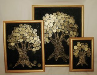 У многих хозяек наверняка есть целые шкатулки с различными пуговицами, оставшимися после сношенных вещей. Они могут так и лежать годами, не находя себе применения, как ненужный хлам, который жалко выбросить. А ведь приложив немного фантазии и креатива, можно сделать из них красивейшее настенное панно своими руками. Например, используя наименее востребованные, зеленые и коричневые пуговицы различных оттенков, можно создать чудесное «денежное» дерево, как показано на фото. При этом, из подручных материалов необходимы только доска, клей и карандаш для зарисовки эскиза. Все это имеется в любом хозяйстве, так что оформление такого панно своими руками не повлечет материальных затрат.