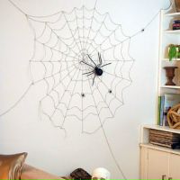Прекрасно будет смотреться паутина из ниток или из веревок. Подойдет шерстяная пряжа. Если нити тонкие, то белая паутинка будет смотреться блекло и не выгодно, лучше использовать черный цвет.