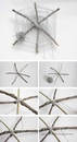 Совсем не обязательно использовать в центре каштан, нужно только хорошенько связать ветки или палочки между собой, а дальше самое время уподобиться паучку и сплести красивую паутину. Замечательное украшения для помещения из природного материала получается. А деткам такая работа позволит развить усидчивость и внимательность.