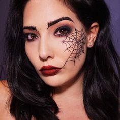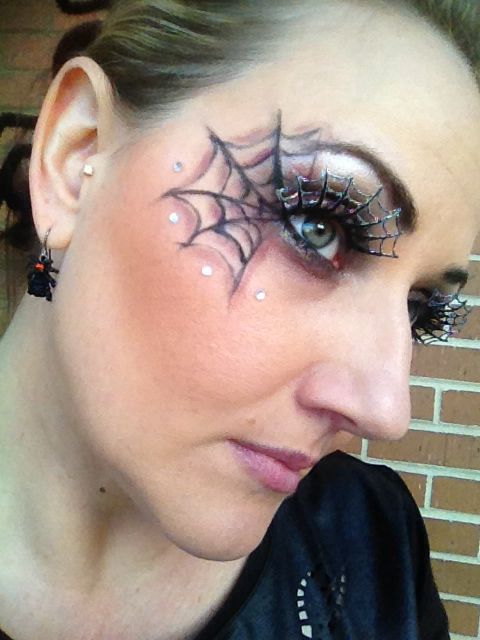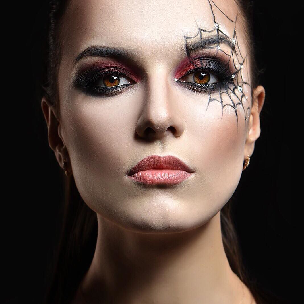 Паутина на лице или маленькая паутинка вместе с тенями подходят для самых разных образов на Хэллоуин. Паутинка может украшать вампира, готическую красавицу, черную вдову или чародейку.