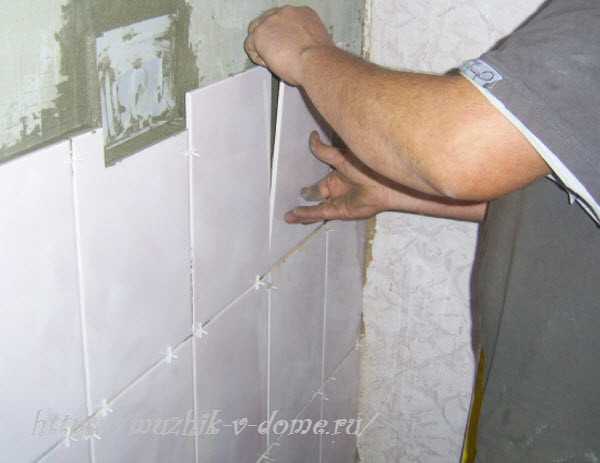 Заблаговременно нужно обзавестись специальными крестиками для изготовления швов равной ширины. Также в этом качестве можно использовать обрезки гипсокартона.