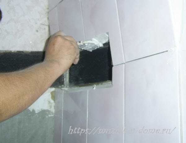 После этого необходимо изготовить вставку нужного размера, отделив от целой плитки лишнюю часть с помощью плиткореза.