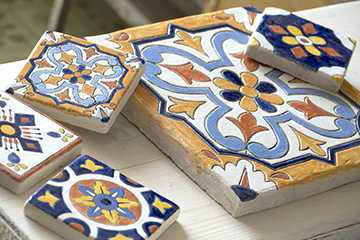 - Майолика — это фактически глазурованная терракотовая плитка, то есть для нее характерно богатство цветов и оттенков.