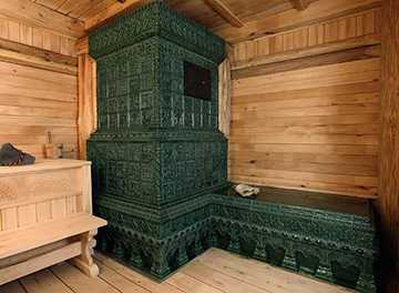- Для банной печи в той ее части, которая расположена в парилке: клинкерная, керамогранит или майолика.