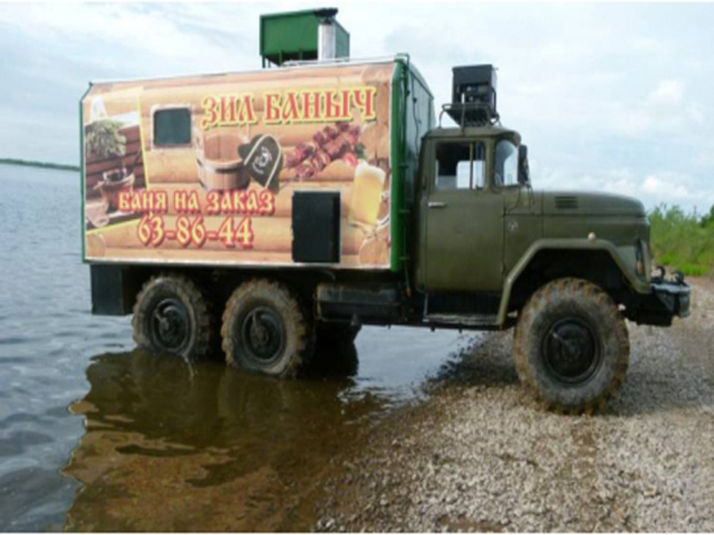 Варианты мобильных бань разнообразны, величина и мощности парной зависят от транспортного средства, выбранного в качестве основы.