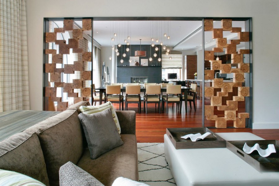 Они используются для разделения комнаты на функциональные зоны или для объединения нескольких помещений. Чаще всего их устанавливают в холле, прихожей, столовой. Состоят такие элементы из каркаса, который заполнен деревом, стеклом или пластиком. Наполнитель может быть как монолитным, так и разделённым на несколько секций. Передвижные конструкции делятся на: