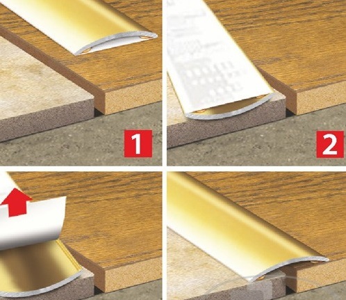 Установка перехода Т-образной формы между ламинатом и керамической плиткой