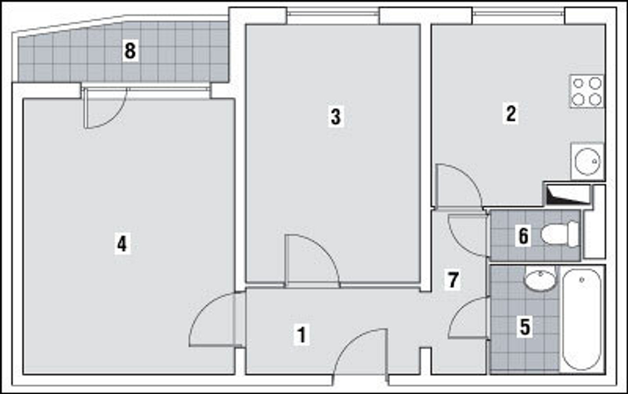 Перепланировка двухкомнатной хрущевки в санитарном узле – необходима. Если он раздельный – соедините его. Это позволит хоть немного увеличить пространство.