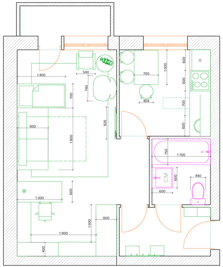 Убрав не несущую стену на кухне, в 99 случаях из 100, вы объедините ее с гостиной.