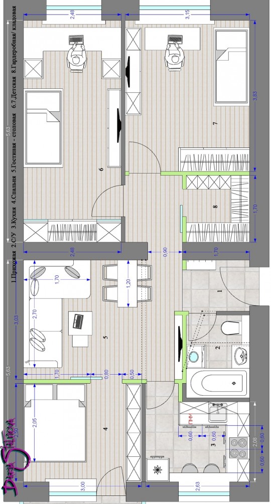 Перепланировка хрущевки 4 комнаты: дизайн переделки квартиры с фото