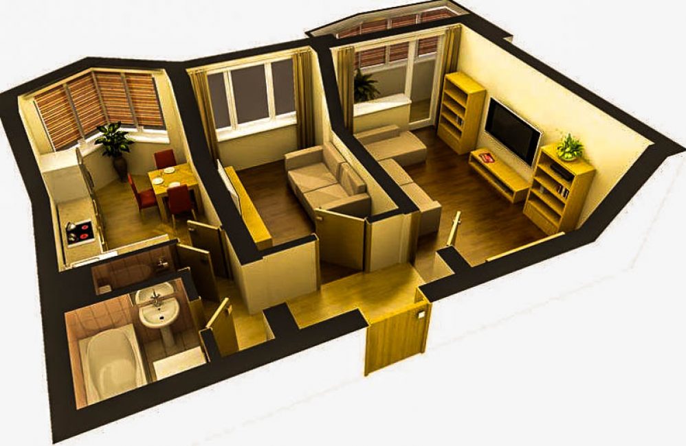 В четырёхкомнатном помещении малогабаритного типа имеются 3 спальных, гостиная, кухонная комната и санузел. Для того чтобы помещения были не загроможденными и функциональным, важно при обустройстве и ремонте все делать правильно.