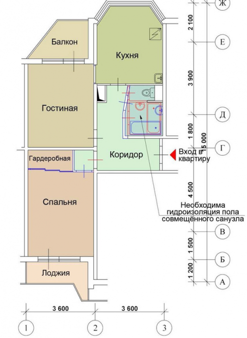 - Запрещается действующими правилами расширять ванные, кухни и туалеты за счет жилых комнат (можно отнимать пространство только у технических помещений).