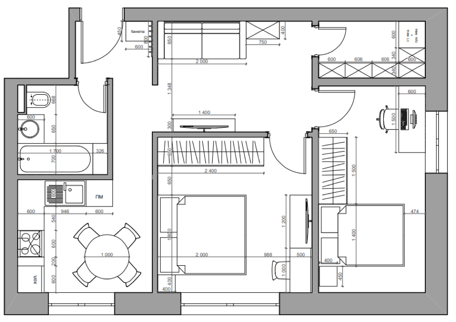 Рассмотрим вариант «книжки». Главная проблема – проходная комната.