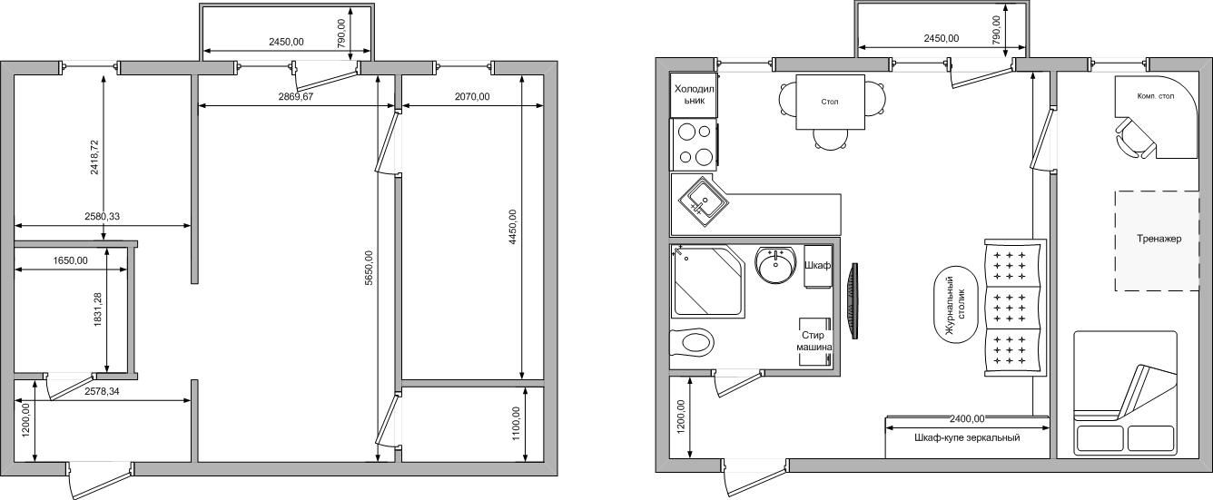 Варианты перепланировки двухкомнатной хрущевки с фото