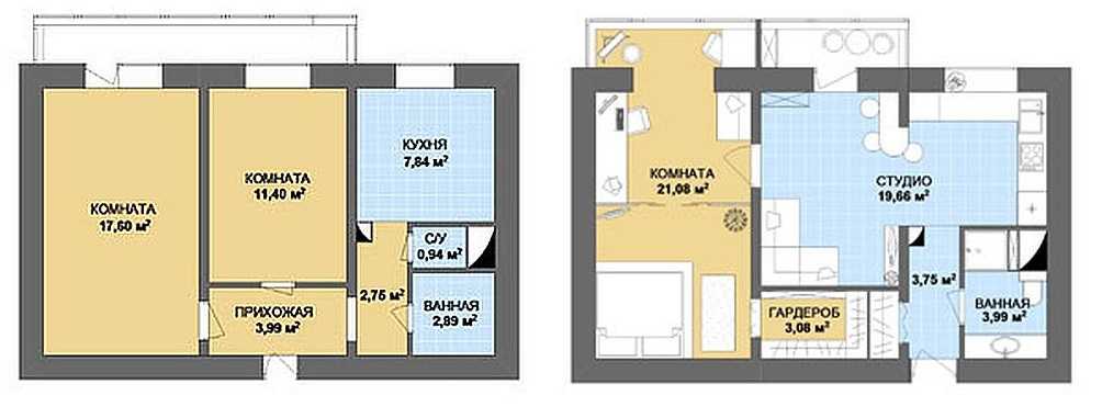 Перепланировка хрущевки 2 комнаты [Варианты + 90 Фото] 2019