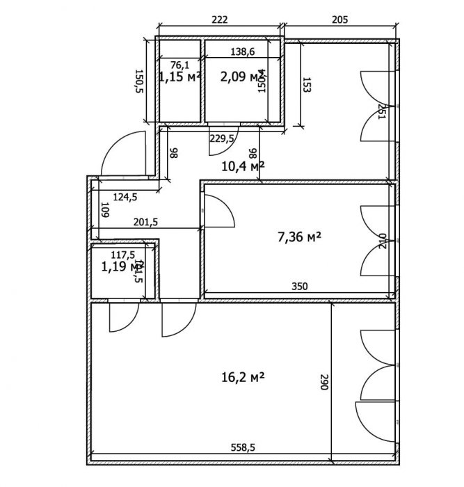Очевидный недостаток такой планировки квартиры – невозможность расширить кухню без ее объединения с комнатой. А это далеко не всегда возможно.