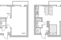 Свое прозвище («мини-улучшенка») планировка квартиры общей площадью 44,6 м² заслужила тем, что она практически повторяет планировки в 9-этажках. Проектировщики уже сделали некоторые выводы. Комнаты изолированные, вот только размер кухни смущает. Однако при перепланировке кухню можно расширить до 8 м²