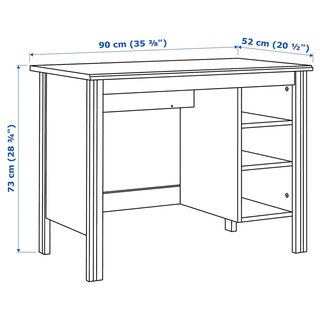 Письменный стол изготовлен из ДСП, МДФ и ДВП, предлагается в белом и темно-коричневом цветах. Модель обладает лаконичным нейтральным дизайном, что позволяет ей вписываться в любой интерьер. Для увеличения рабочего пространства можно дополнить стол тумбами и разнообразными модулями для вещей. Сзади имеется отверстие для проводов, то есть стол также выступает и в роли компьютерного, а ящик оснащен специальной конструкцией, предотвращающей выпадение. Поверхность покрыта акриловой краской.