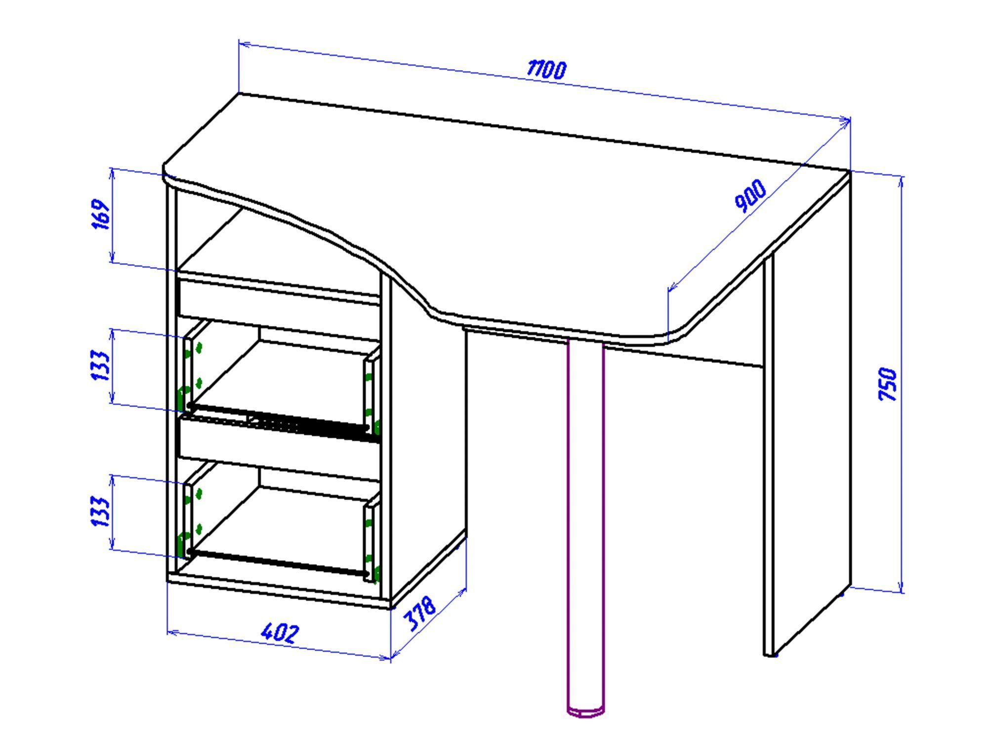 Таким образом — ширина от 100 см, в угловом 160-170 см, узкие модели имеют показатель в 120-130 см. Ширина подбирается индивидуально. Она не должна быть слишком большой или маленькой. В противном случае на столе либо ничего не поместиться, либо будет проблематично взять предмет с другого края. - Длина. Длина — стандартного размера 110 см. Бывают уменьшенные модели, в которых этот параметр может составлять 50-60 см.