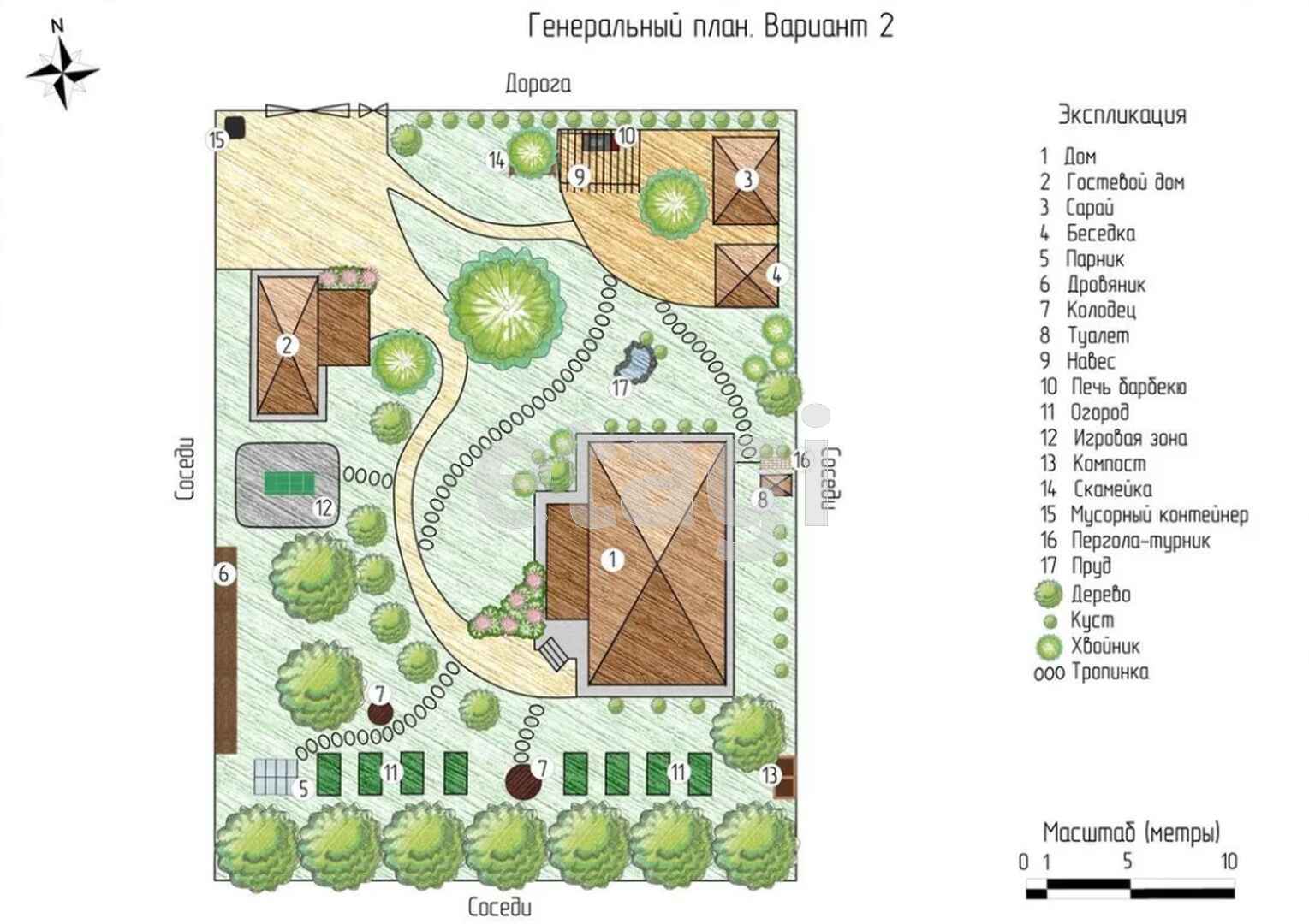 Планировка участка на 10 сотках следующая:
