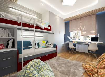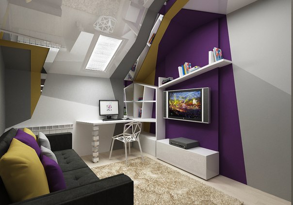 на зоны для творчества, учебы, компьютера. Можно иметь два