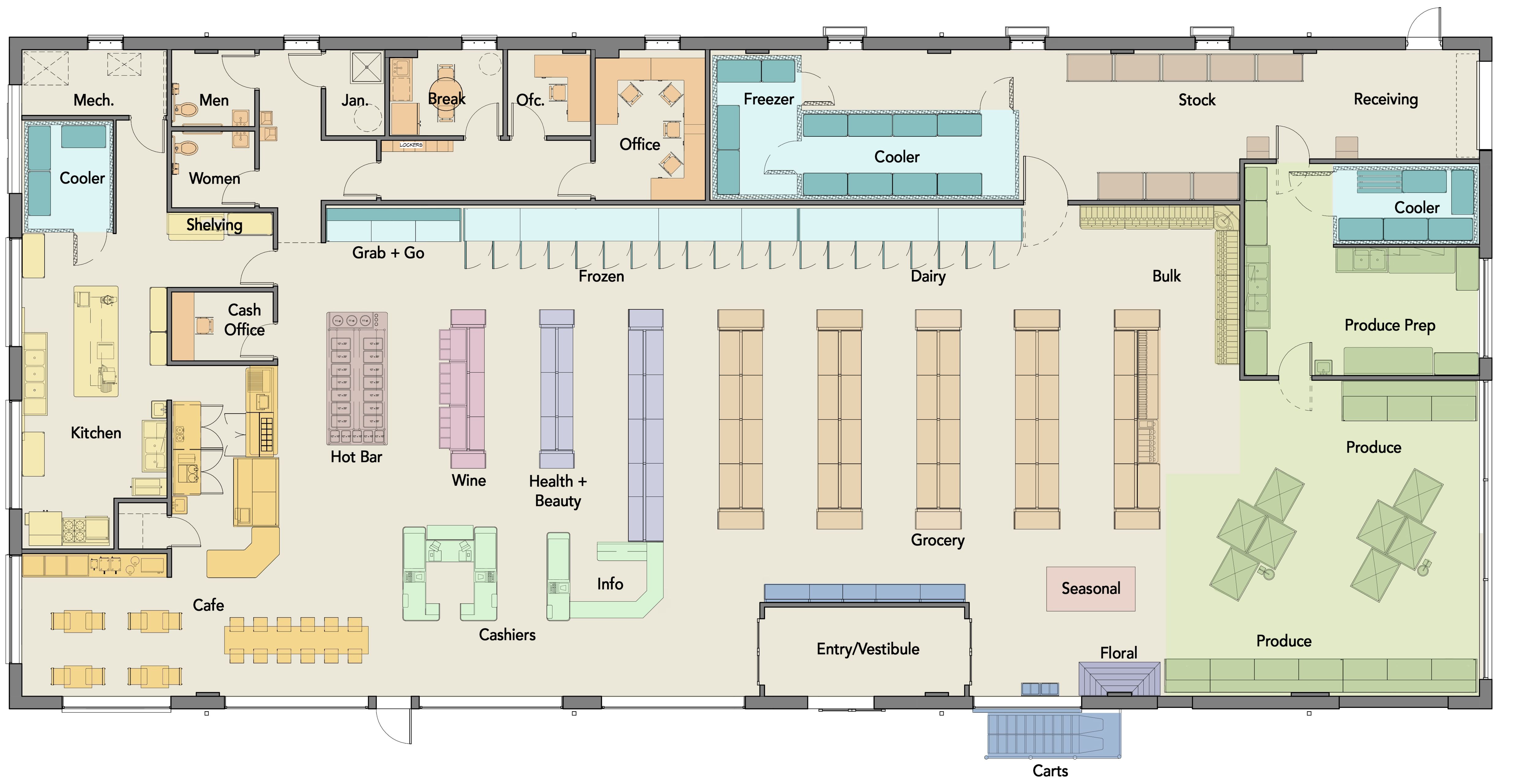 Планировка минимаркета: Схема магазина, планировка торгового зала продуктового магазина