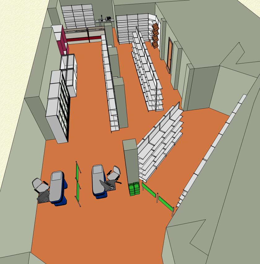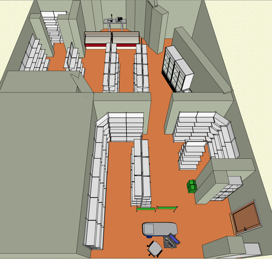 - Входная часть в здание и в отделы, а также техническое обеспечение и стеллажей удобно расположены.