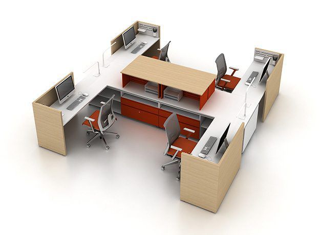 Командная компоновка группирует работников по командам. Размер и пространство, выделенное каждой команде, варьируются в зависимости от типа работы, которую необходимо выполнить. Командное рабочее пространство часто включает отдельные рабочие станции и пространство для совместной работы. Это снижает потребность в конференц-залах.