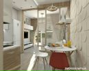 м можно разместить целый мир, если правильно выбрать точку опорыС крошечными квартирами работать сложнее, чем с большими пространствами — они как будто говорят: « Ну, попробуй что-нибудь придумать! » Каждый раз дизайнеру приходится изворачиваться и размещать на паре десятков квадратных метров кухню, столовую, гостиную, рабочий кабинет и изолированную спальню. А может, найдется место еще и для подсобной комнаты? О том, как с достоинством выйти из подобной ситуации, посмотрим на примере дизайн-проекта квартиры-студии « Тишинка 28,8 », реализованного молодым дизайнером Марией Дадиани.