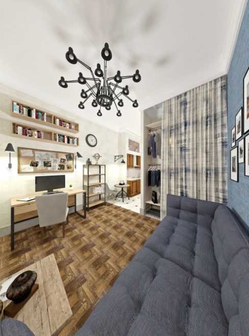 - Полезно использовать сделанную на заказ мебель-трансформер (ее цена существенно выше обычной). Это предоставит возможность (по мере необходимости) преобразовать одну зону в другую.