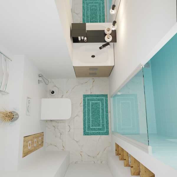 В объединенный с туалетом санузел ванна не устанавливается, а достаточно современной душевой кабины. Если место позволяет, то стиральная машина размещается здесь же, или располагается в кухонном гарнитуре.