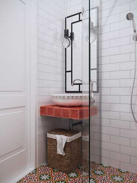 - Для ванной комнаты отводится всего 3-4 квадратных метра. В связи с этим придётся отказаться от привычной ванной в пользу компактной душевой кабины.