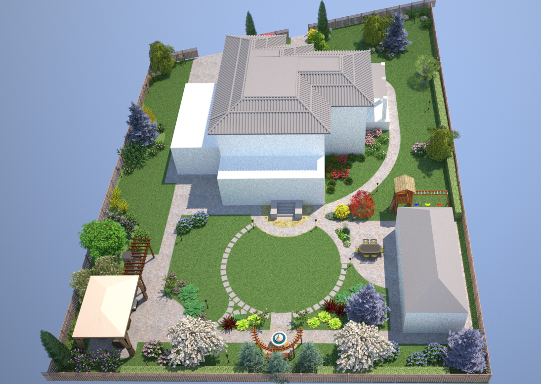 Идеальная схема участка – та, на которой находится место для всего и сразу. Продуманный дворик – это территория, где всем жильцам найдется, чем заняться, но при этом никто не будет мешать другим.