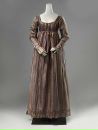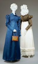 Появились шелковые платья с длинными шлейфами, вышитые золотом и серебром, и воротники «Стюарт». Из материалов муслин, батист, кисею, кружево, креп, тюль, прозрачную шерсть «дымку».