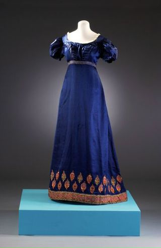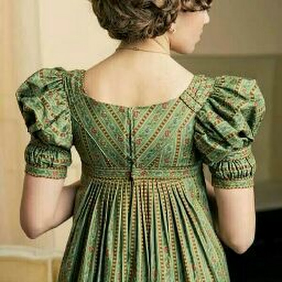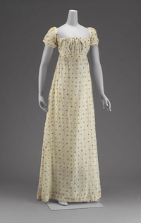 Платье в стиле ампир – это длинное белое платье с короткими шарообразными рукавами (рукава-фонарики), подчеркивающими плечи, и с завышенной линией талии, очень часто выделенной поясом. До 1809 года с платьями в стиле ампир женщины еще не носят корсеты. Корсет вышел из моды сразу же после Великой французской революции конца XVIII века, как пережиток аристократической моды. Однако уже в 1809 году корсеты вновь входят в моду.