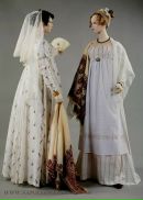 Платья напоминали рубашки и имели ампирный силуэт, созданный, как античные пеплосы и хитоны.
