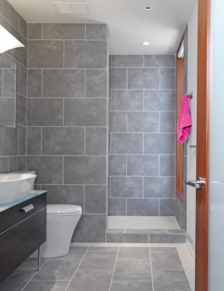 Использование крупноформатной плитки отлично подходит для безбарьерного, свободного, открытого дизайна. Но всегда ли безопасна такая плитка? Маленькие плитки образуют на поверхности больше межплиточных швов, что естественно увеличивает сопротивление скольжению, поэтому если вы решили применить крупноформатную плитку, то при выборе обращайте внимание на показатель сопротивление скольжению или шероховатость. Пол вашей душевой должен быть спроектирован с учетом частого и долгого контакта с водой.