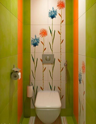 Цветовая палитра может быть однотонной или с нанесением рисунков и орнаментов. Кафель в туалете может создавать панно или целую картину при помощи фотопечати.