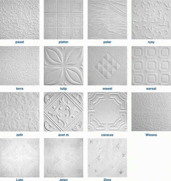 В продаже имеются следующие виды плитки для потолка из пенопласта: