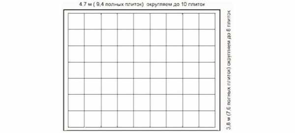 На листе бумаги необходимо начертить план комнаты, с сохранением масштаба. Далее необходимо провести диагонали и разместить с максимальной точностью плитки от центральной части к краям комнаты.