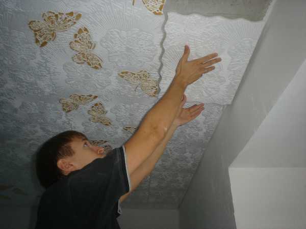 Потолочная поверхность в кардинальной подготовке не нуждается. Старое покрытие аккуратно снимается, большие ямки и зазоры заполняются шпаклевкой. Вот и все – можно приступать к монтажу!