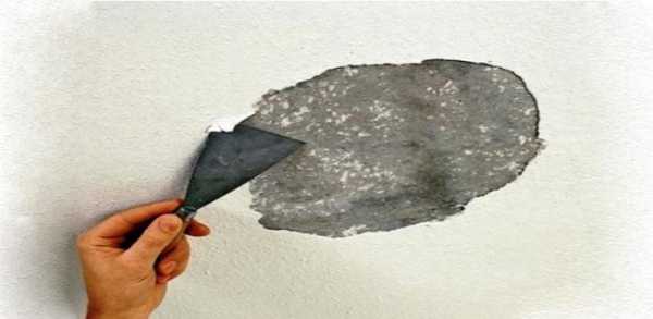 - Если на потолке имеются значительные дефекты — выбоины, щели, их нужно зашпатлевать. Мелкие дефекты в заделке не нуждаются, их закроют плитки.