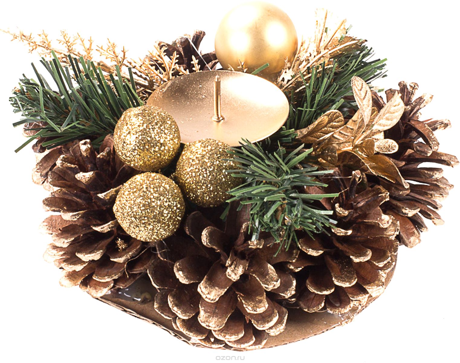 Самый простой вариант – декорировать готовые подсвечники, украсив их в духе праздника шишками, веточками и елочными игрушками.
