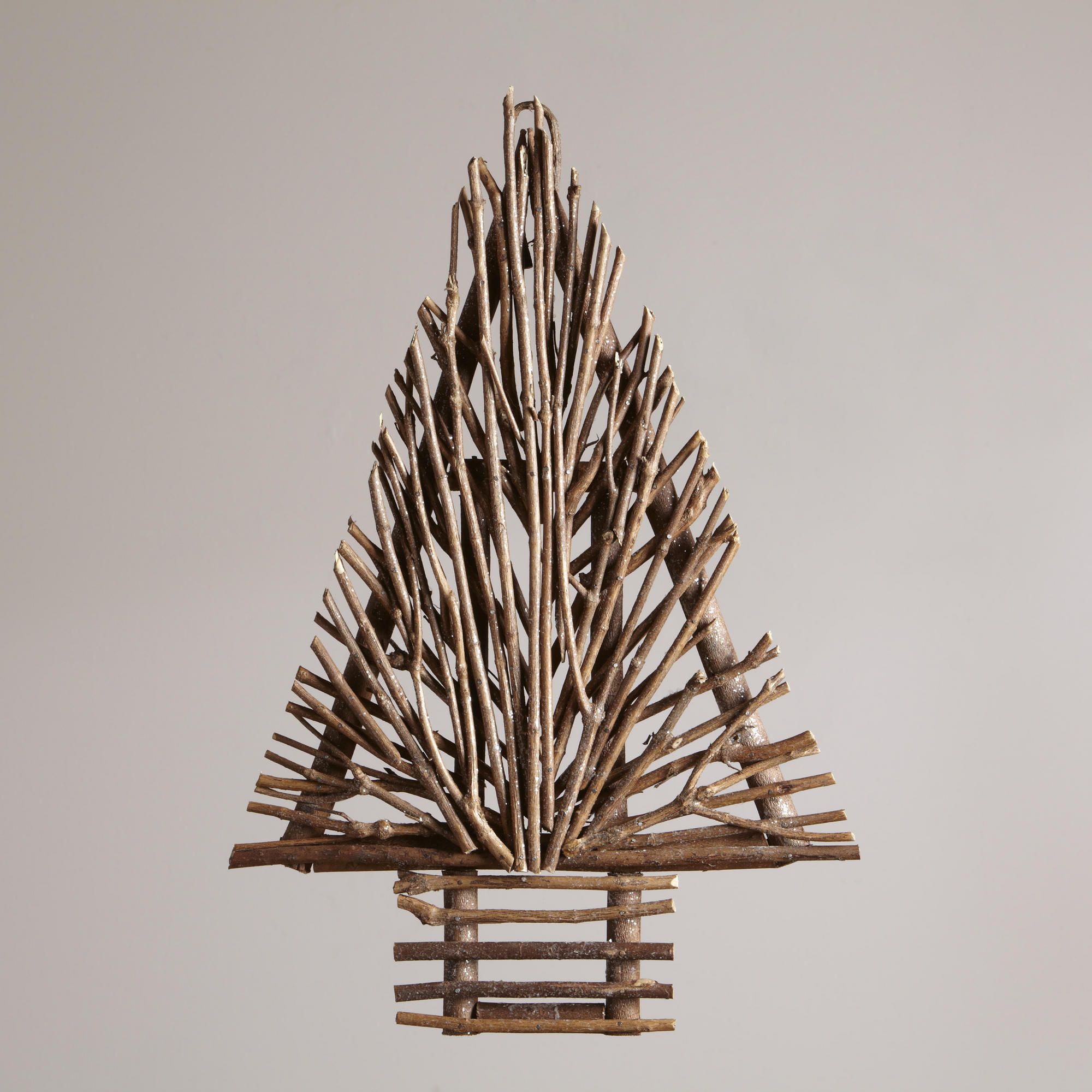 Елка из веток деревьев своими руками делается очень быстро. Повесьте ее на стену или закрепите в горшке. Задекорируйте новогодними шарами, гирляндой или снежинками. На верхушке установите звезду, которую тоже можно сделать из веток или кусочка деревяшки.